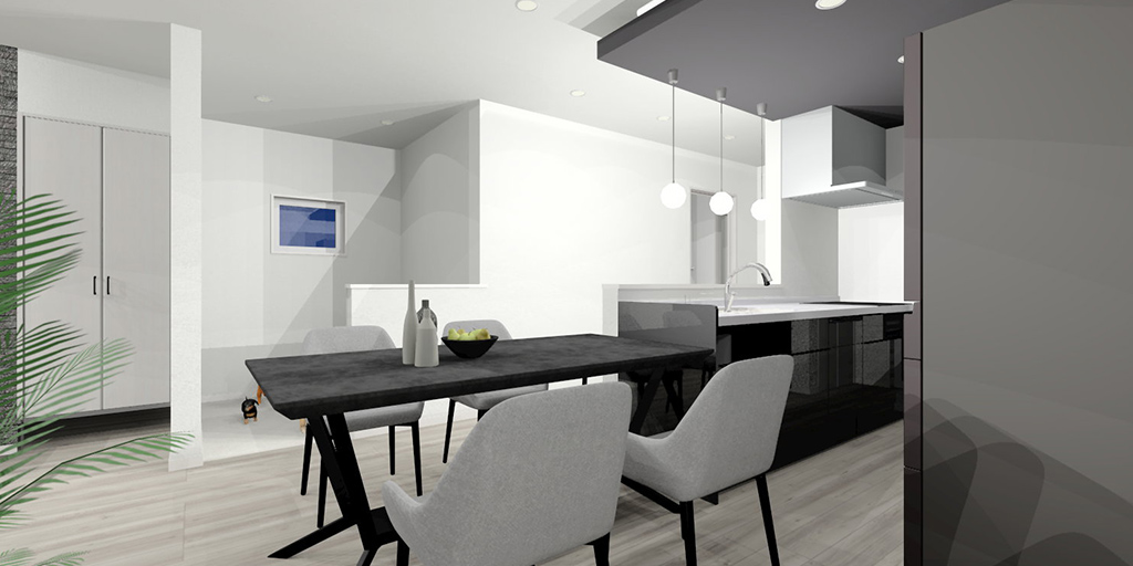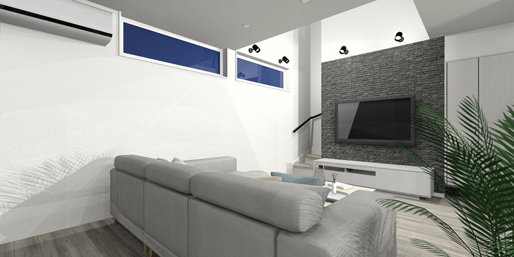 🔍ハイドアと吹き抜けが生む、開放感あふれるリビング