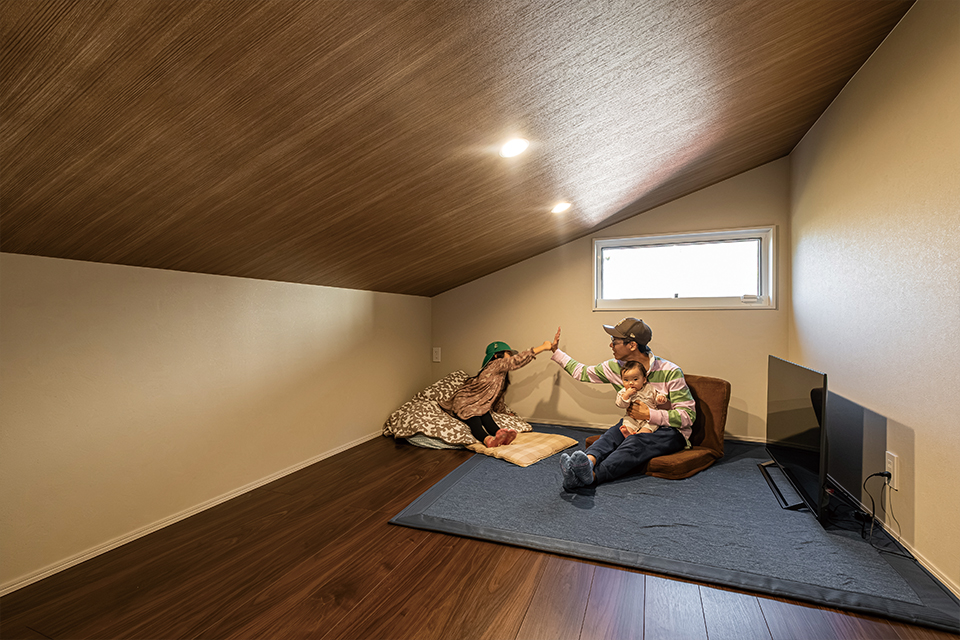 • 立ったまま使える高さを確保した小屋裏空間は、収納はもちろん多目的に活用できる便利なスペース。