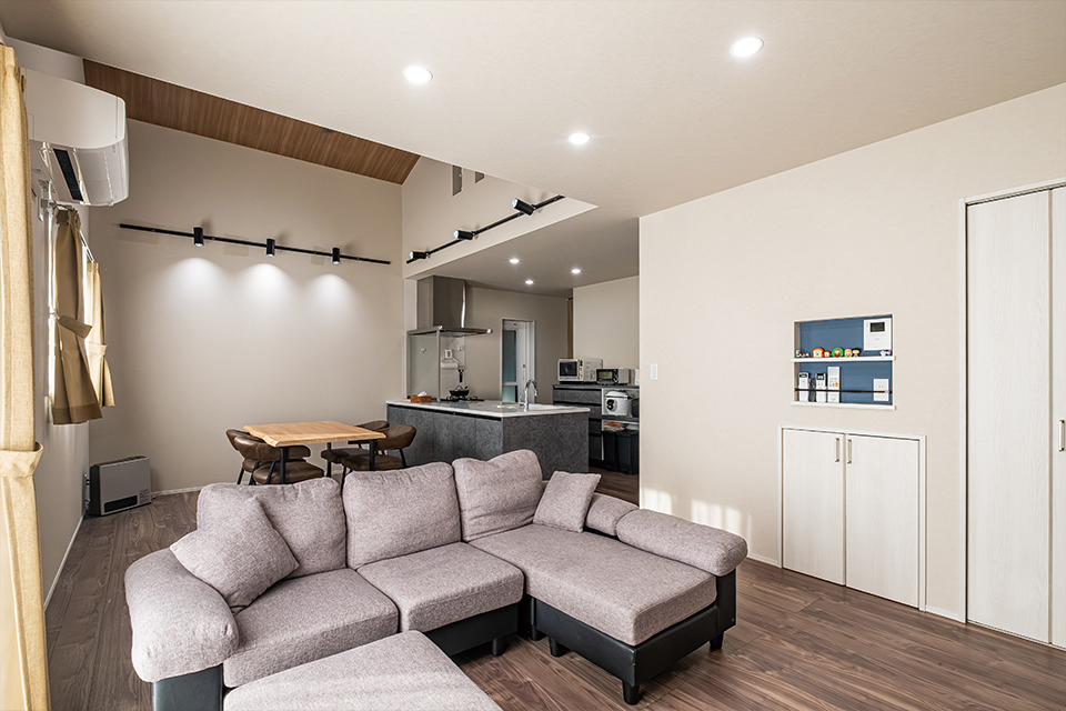 以前にご主人のお姉さまの新築やご実家のリフォームをお手伝いさせていただいたご縁からお声がけいただき、平屋のような暮らしやすさと二階建てのゆとりを兼ね備えた住まいをご提案し、完成後はご満足いただけました。