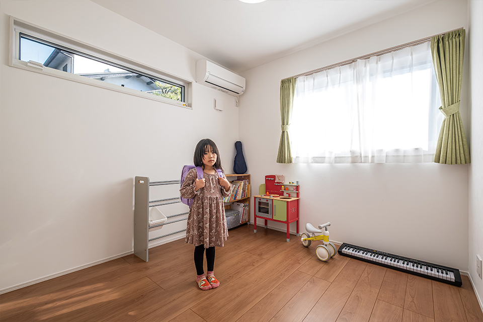 • 住まいの中でも特に陽当たりに恵まれた位置に設けた洋室は、現在は長女のお部屋として使用。