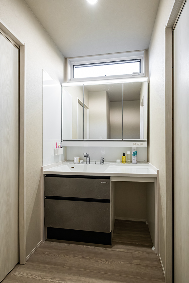 • ハイサイドライトからやわらかな光が差し込む、明るく心地よい洗面スペース。